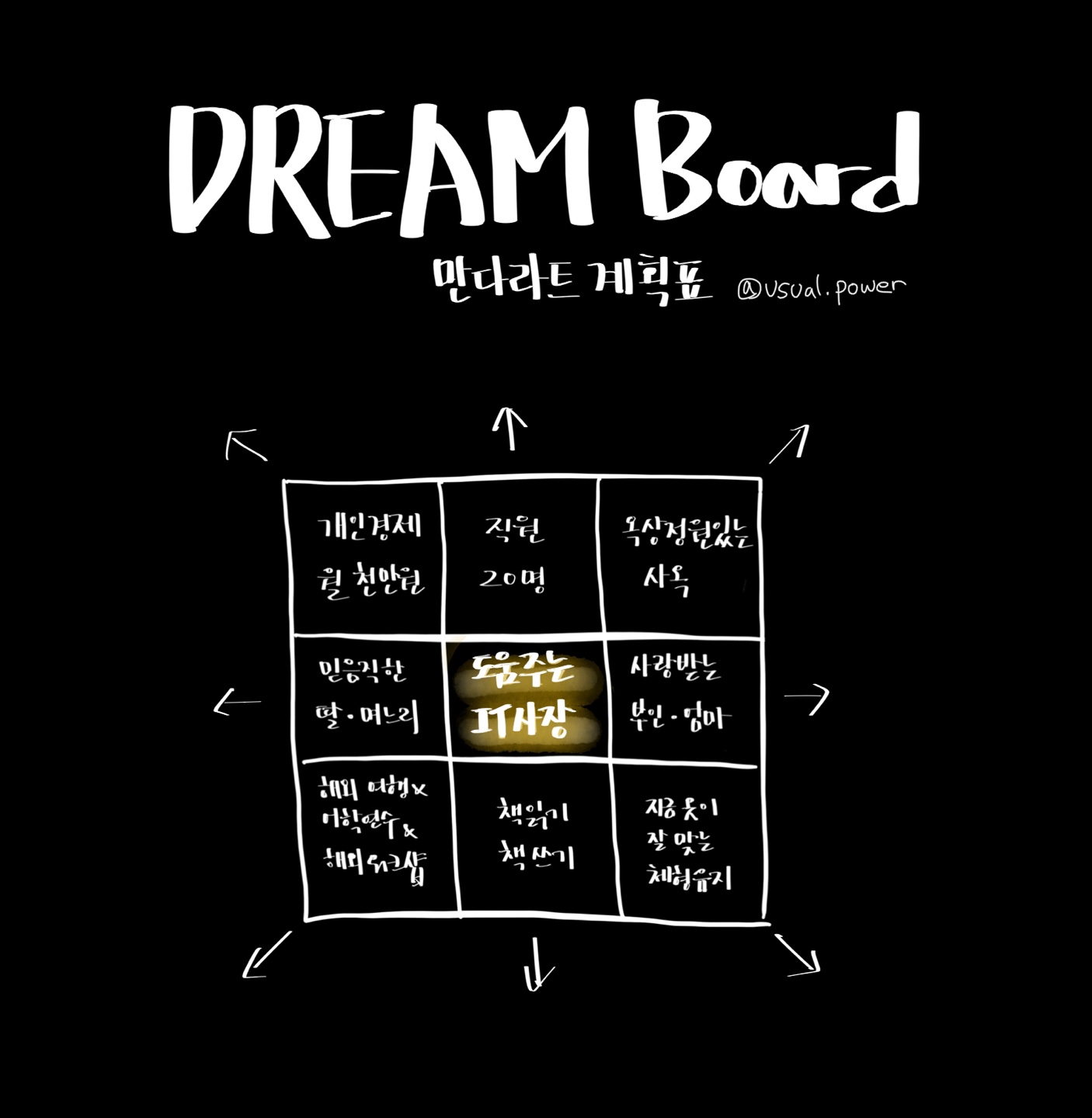 가장 가운데에 이루고 픈 목표를 적고,
