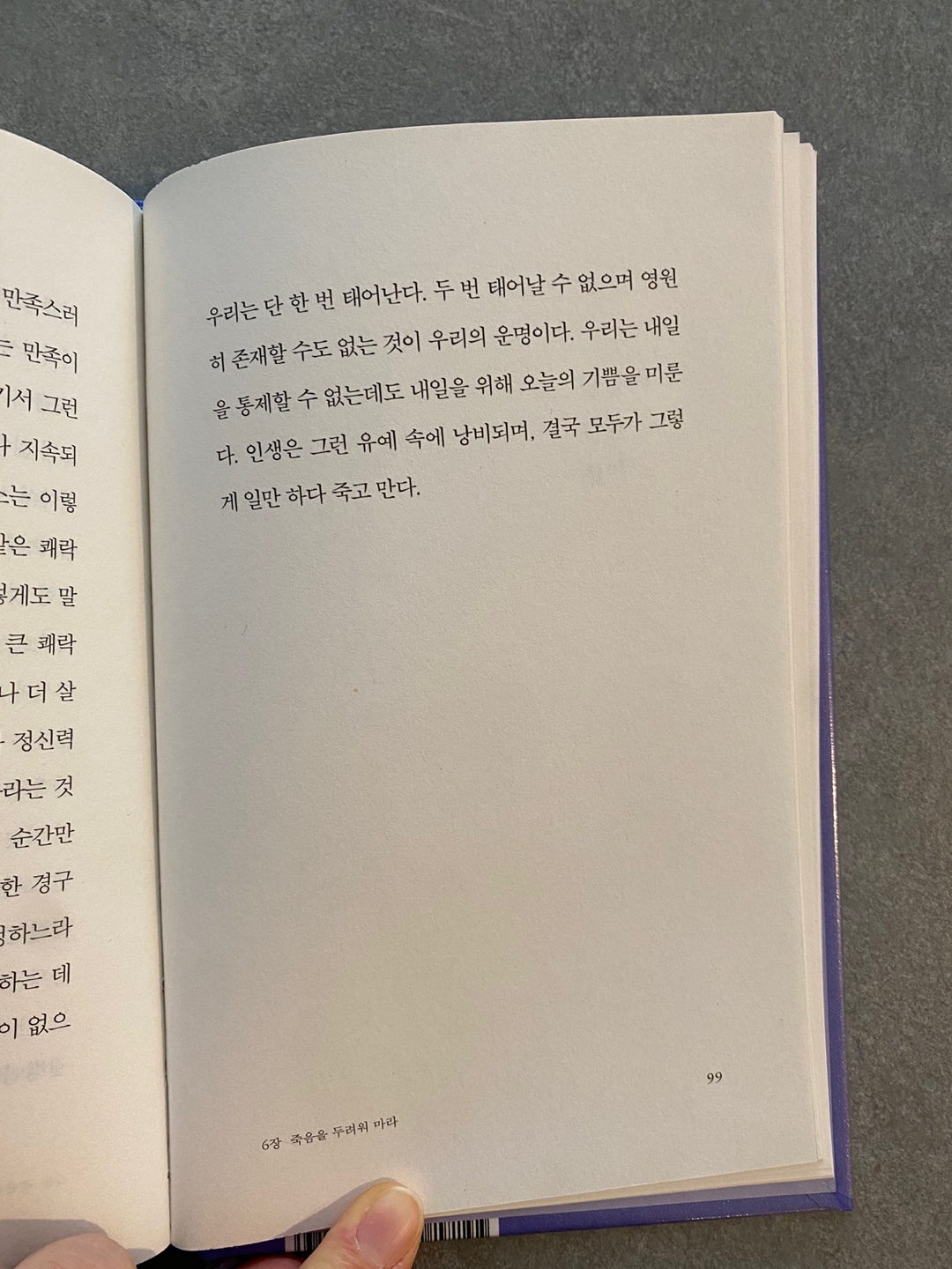 "우리는 단 한번 태어난다. 두번 태어날 수 없으며 영원히 존재할 수도 없는 것이 우리의 운명이다.