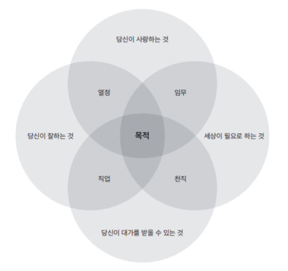 목적을 작가는 아래의 그림으로 이해시켜준다. 그리고, 비즈니스의 중심은 자본주의가 아닌, 목적과 인간관계여야 하고, 그것이 장기적 성과를 일으킨다고 말한다.